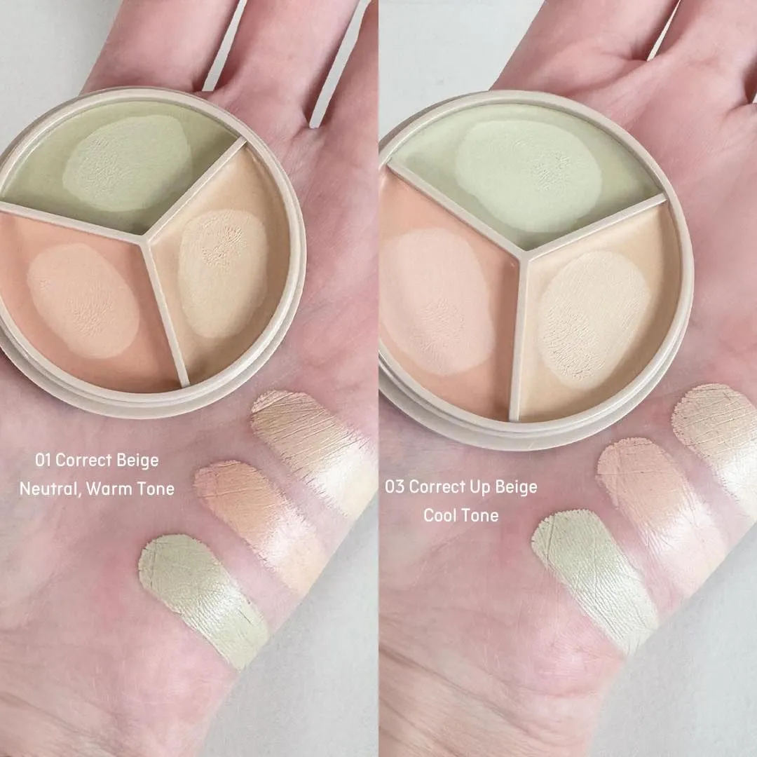 کانسیلر چندکاره سه رنگی از برند The Saem (ساِم)، مناسب برای پوشش مشکلات پوستی مثل لکها، قرمزی و تیرگیهای زیر چشم، با بافت نرم و قابل ترکیب.