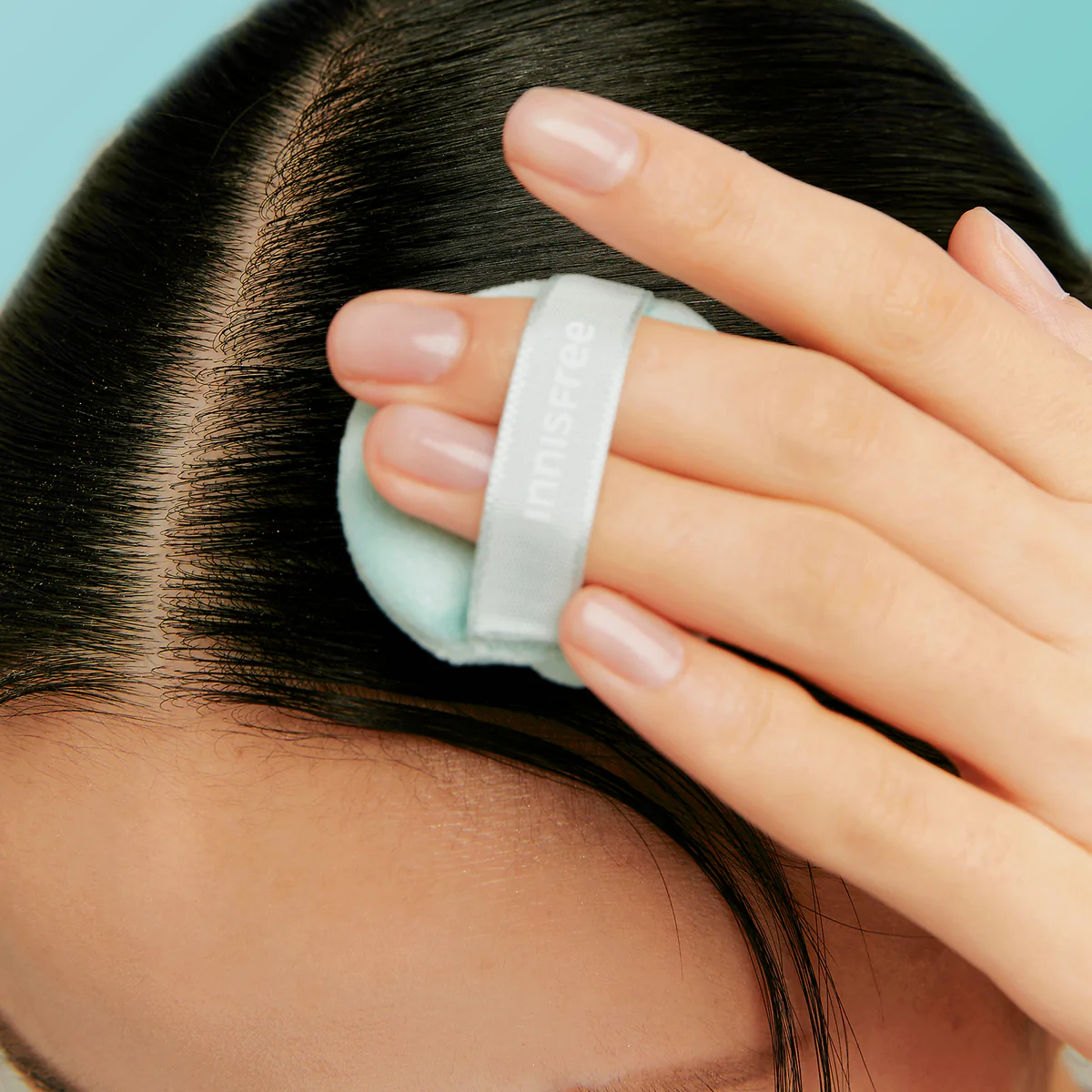 کمی از پودر رو با پاف (اسفنج) به جلوی مو یا فرق سر بزن و بهآرامی بتکان تا موی چرب، تمیز و زنده شود.
