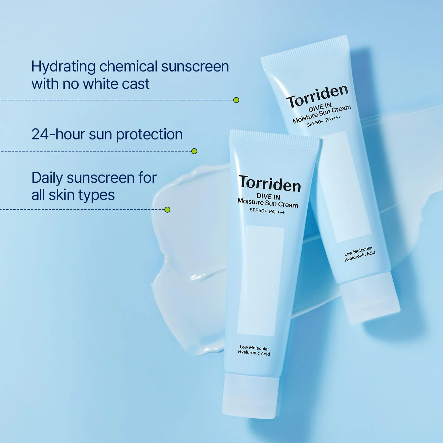 کرم ضد آفتاب مرطوبکننده توریدن مدل DIVE-IN، یک ضد آفتاب ارگانیک که با ترکیبی از هیالورونیک اسید و سایر مواد مغذی، از پوست در برابر اشعههای مضر UV محافظت کرده و رطوبت مورد نیاز آن را تأمین میکند.