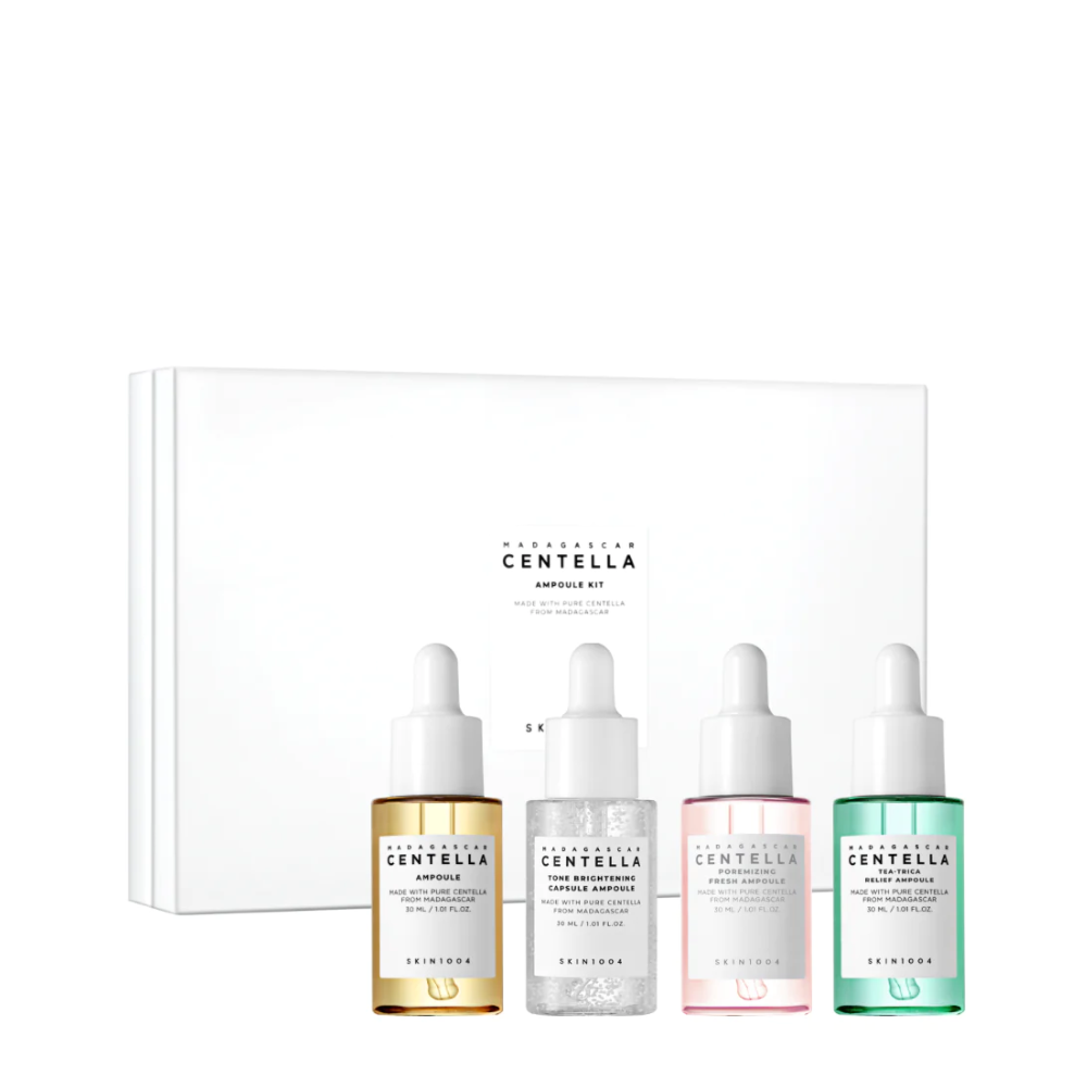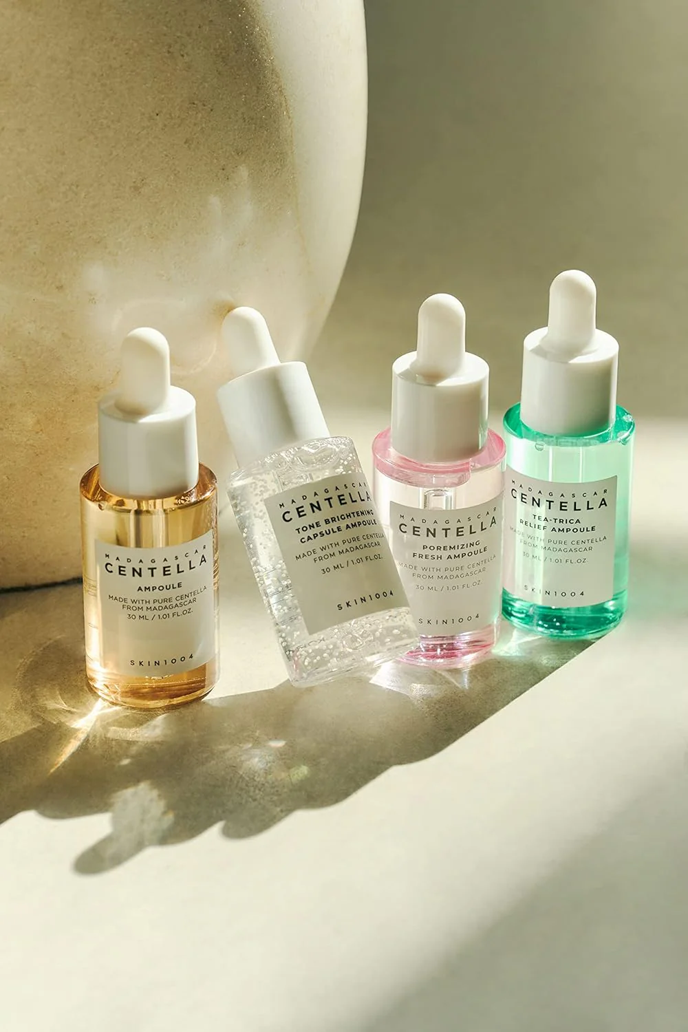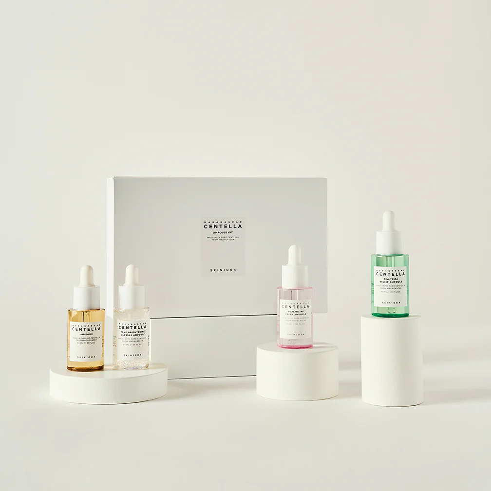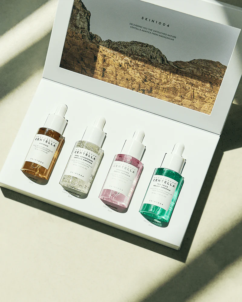 کیت SKIN1004 Madagascar Centella Ampoule Kit شامل ۴ سرم کوچک است که هر کدام برای مشکل پوستی متفاوت طراحی شدهاند: